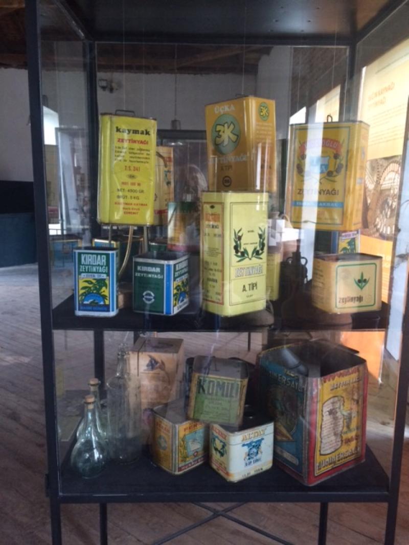 İki katlı binanın, giriş katında yine zeytinyağı ve zeytinyağı üretimi ile ilgili çeşitli ve ilginç aletler, saklama küpleri sergileniyor. Güzel köylü kızlarının zeytin toplama ve zeytinyağı yapımını gösteren tablolar, fotoğraflar da çok hoş.Üst kat daha da ilginç ve özellikle de yüksek, çok hoş ahşap çatı salona bir ferahlık kazandırmış. Türkiye’nin çeşitli zeytin bölgelerinden 25,000 km’den fazla yol kat ederek ve yakın çevreden toplanan, zeytinci dostların hediyeleri olan, zeytinyağı presleri, zeytin toplama, taşıma ve saklama kapları,sepetler, ahşap zeytin kırma, ahşap ezme değirmeni, ahşap burgu mengene gibi aletler, zeytinyağı ile ilgili bilgiler içeren panolar, kısacası zeytinyağı ile ilgili her şey sergileniyor. En nostaljik olanı ise beni çocukluğuma götüren en eski zeytinyağı markaları olan teneke yağ kutular. Ayrıca sepetler, zeytin ve diğer ürünlerin saklandığı amforalar, zeytinyağından üretilen sabunlar, çok ilginç bir sabun kazanı, sabun mühürleri, sepetler, sabun yapım tekniği de açıklamalı olarak de sergileniyor.