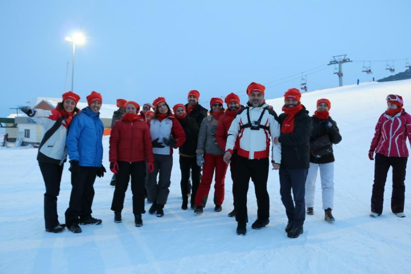 Fotoğraf çekimi bitti. Artık sırada kızak ile kaymak var. Hepimiz kızaklarımızı aldık ve 1. istasyona gittik. Hatta bir kısmımız birinci istasyonda inmeyip ikinci istasyona kadar telesiyejde bir tur yaptı. Soğuk olsa da manzara ve kızak yapacak olmanın heyecanı daha baskındı.