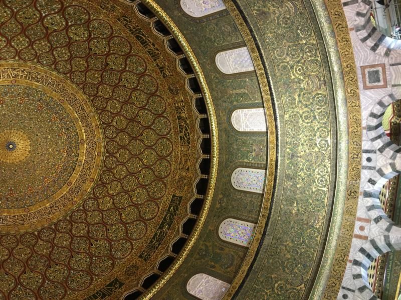 Aslında bu fotoğrafı göstermemin sebebi çoğu insanın sarı kubbeli yapıyı Mescid-i Aksa zannetmesi. Bunun sebebi Kubbet-üs Sahra'nın daha büyük olmasından dolayı uzak çekimlerde daha net görünmesi ve turistlerin daha çok ilgisini çekip sosyal medyada Kubbet-üs Sahra'nın daha fazla paylaşılması diye düşünüyorum. Bu arada Kubbet-üs Sahra'nın kubbesinin saf altın olduğunu söylemem lazım. Ürdün Kralı Kubbet-üs Sahra'nın kubbesi için 80 kilogram altın bağışlamış.