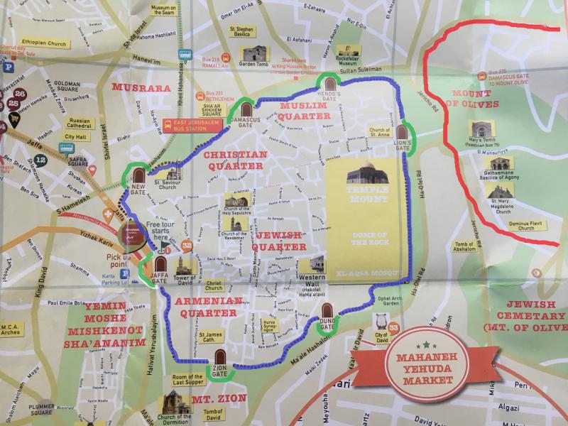 Kudüs'teki hostelimde dağıtılan Kudüs haritasını paylaşarak daha iyi bilgilendirmek istiyorum.