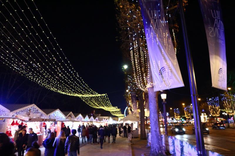 Bizim şansımıza Champs-Elysees’in mağazaların olmadığıConcorde Meydanı istikameti yönünde Noel Pazarı vardı. Aromalı sıcak şarap ,lezzetli yiyecekleri ,çikolataları ve orjinal hediyelik ürünleri ile mağazalardan daha ilgi çekiciydi . Eğer bu bölgeye gündüz ve güzel bir havada gelirseniz halkın da sakin vakit geçirmekten hoşlandığı bir alan olan Tuileries Bahçesi'nde zaman geçirebilirsiniz. Meraklısına sağlı sollu bulunan Orangerie Müzesi ve Jeu de Paume de burda bulunuyor.