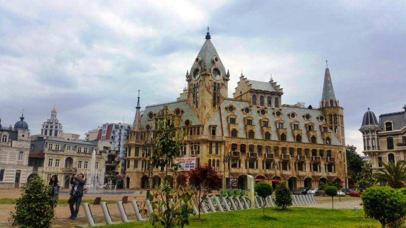 Parkın nimetlerinden faydalandıktan sonra denizden biraz uzaklaşarak parkın karşısındaki sokaktan içeriye doğru tarihi bir yolculuğa başlıyoruz. Burada Orta Avrupa Mimari kültürünü sergileyen yapılar yer alıyor. İlk gelişimde çoğunluğu bakımsızlıktan yitirilmeye müsait bir haldeyken şimdi tamamen dimdik ayakta. Sanki Batum' a değil de başka bir Avrupa şehrine gelmişiz gibi bir hava yaşatıyor. Ara sokakların caddeye açıldığı alanlarda geniş parklar meydanları süsleyen ayrı bir incelik. En güzel meydanlarından birisi de Avrupa Meydanı. Dört tarafını saran sokaklar ve onları taçlandıran yapılar. Bir de ortadaki havuzu ile serinlik veren esinti, ayrılamayacağımız meydanlardan birisi.