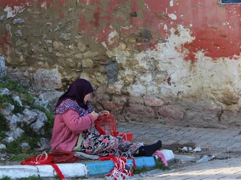 Evinin önünde el işi yapan teyze, bu kadar insanın köylerine akın etmesinden, kirletmesinden hiç şikâyetçi değil olmalı ki tebessümle hoş geldiniz diyor bize.
