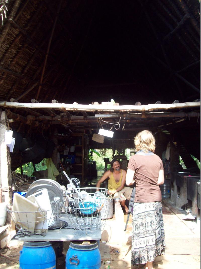 Bu fotoğraf Johny'nin evinden… Johny 20 küsur senedir Auroville'de yaşayan 70 yaşlarında tatlı bir amcamız. Her Pazar güzel bir Pazar kahvaltısı için evinin kapısını açıyor gelmek isteyen herkese. İsteyen orada pişiriyor yemeğini, isteyen yanında getiriyor. Yiyecekler ortaya konuluyor, hep birlikte yeniliyor. Kendisi de geçiyor ocağın başına herkese üşenmeden cizleme yapıyor ve tabii müzikler, sohbetler de cabası…