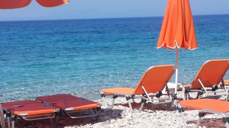 Adadaki ikinci günümüzde kiraladığımız aracımız sabah 09.00'da otelimize getirildi. İki gün için 70 Euro ödediğimiz arabamıza atladığımız gibi adanın merkezi olan Vathy'e giden yoldaki plajları keşfe koyulduk.