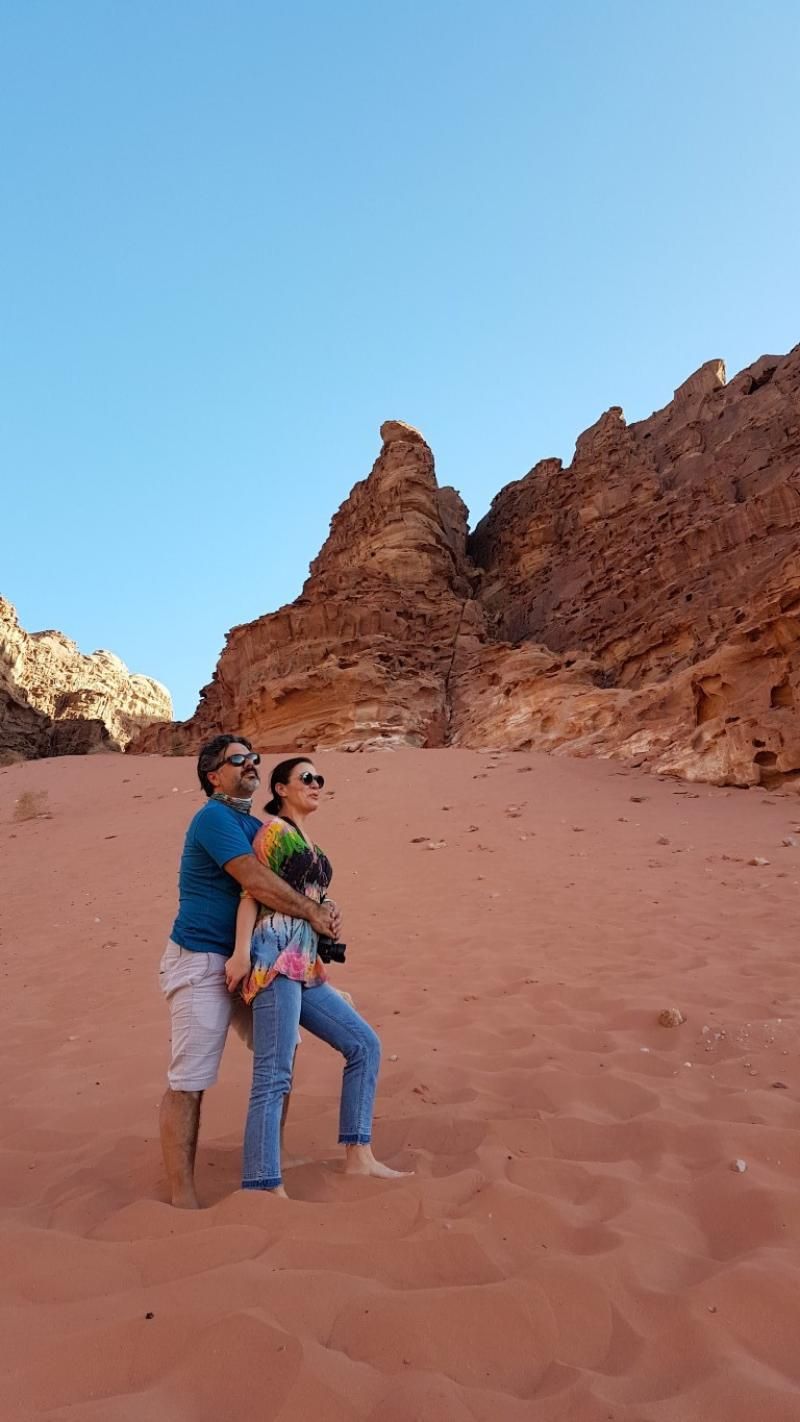 Anlatmaya baştan başlayalım. Akabe’den öğle saatlerinde yola çıktık. Wadi Rum, Akabe’nin yaklaşık 65 kilometre kuzeydoğusunda yer alıyor. Bir saat içinde buraya ulaştık. Wadi Rum, eskiden Arap ticaret yolları üzerinde bulunduğundan stratejik öneme sahipmiş. Daha önce Petrayazısında yazdığım gibi kuzeydeki Akdeniz ile güneydeki Kızıldeniz limanları arasındaki ticaret eskiden yalnızca deve kervanlarıyla yapılıyormuş.