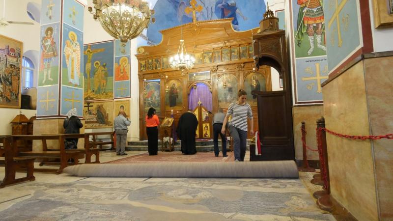 Sadece dini törenler zamanında ya da günün özel saatlerinde halıyı kaldırıp mozaik gösteriliyor. Biz de bunu kaçıramazdık elbette. Harita o dönemde o denli detaylı işlenmiş ki şaşırmamak mümkün değil.