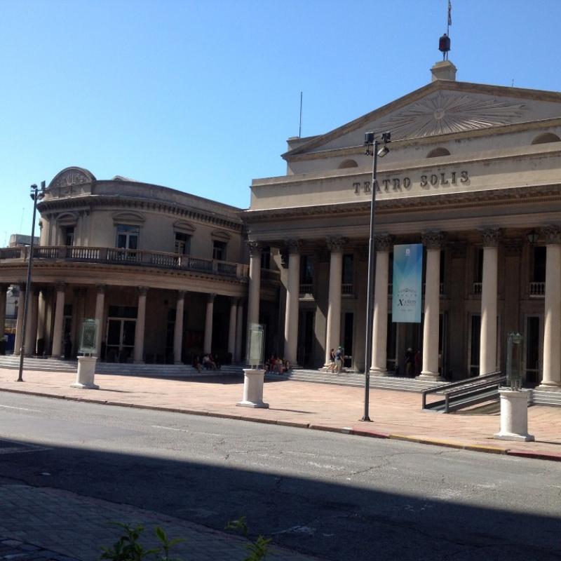 Bu meydan civarındaki Tiyatro Solis de mutlaka görülmesi gereken yerlerden biri. Tiyatronun içini görmek isterseniz mutlaka yanınızda Uruguay pesosu bulundurmalısınız. Dolar kabul etmiyorlar. Kişi başı 50 Uruguay pesosu (yaklaşık 2 $) Uruguay’da $ her yerde geçiyor ama yalnız bu tiyatro turunda kabul ettiremedik. Tiyatro turu belli saatlerde gruplar halinde yapılıyor. Biz İngilizce tura katıldık. Bu tanıtım turlarında tiyatro eğitimi alan 3 genç de bize çeşitli salonlarda küçük oyunlar sergileyerek turumuza renk kattı.