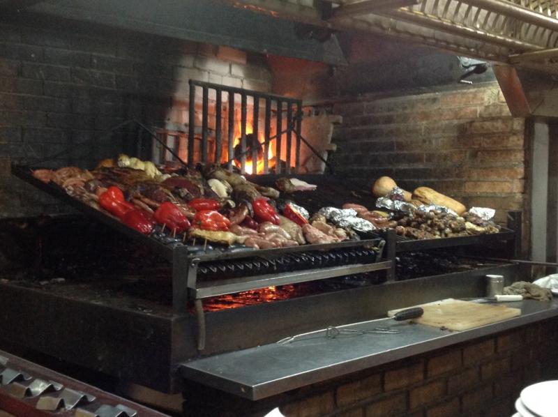 Mercado del Puerto 1885’te istasyon binası olarak yapılmış ancak 1940 yılında pek çok restoranın bulunduğu bir yeme-içme merkezine dönüştürülmüş. Mekânın dört bir yanında odun ateşinde pişen çeşitli etlerin bulunduğu barbeküler var. Etler ve yanındaki büyük kırmızıbiberler iştahınızı kabartıyor. Gemimiz hemen limanda ve restoranların hepsi yiyecek dolu fakat bu mekânda oturup “bife ancho” ile yanında “Patricia” biralarımızı içecek “merron” dedikleri közde kırmızıbiberimizi yiyeceğiz.