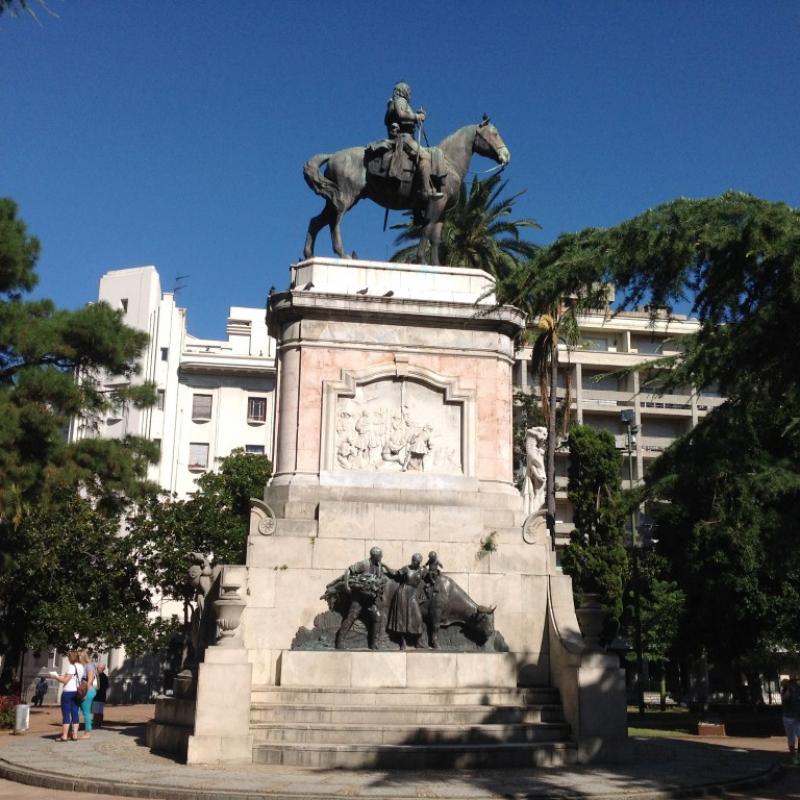 Bağımsızlık Meydanı’nın ortasında Uruguay’ın halk kahramanı Artigas’ın at üzerinde figüre edilmiş çok görkemli bir heykeli var. Burası aynı zamanda bir anıt mezar. Artigas’ın kemikleri heykel kaidesinin altındaki bir odada muhafaza ediliyormuş. Artigas, İspanyolları yenerek ülkenin bağımsızlığını kazanan büyük bir lider. Uruguay’ın Atatürk’ü. 1850 yılında ölen bu halk kahramanı için 80 yıl sonra yapılmış bu anıt. Liderin külleri ise 1977’de konulmuş heykelin altındaki mozoleye.