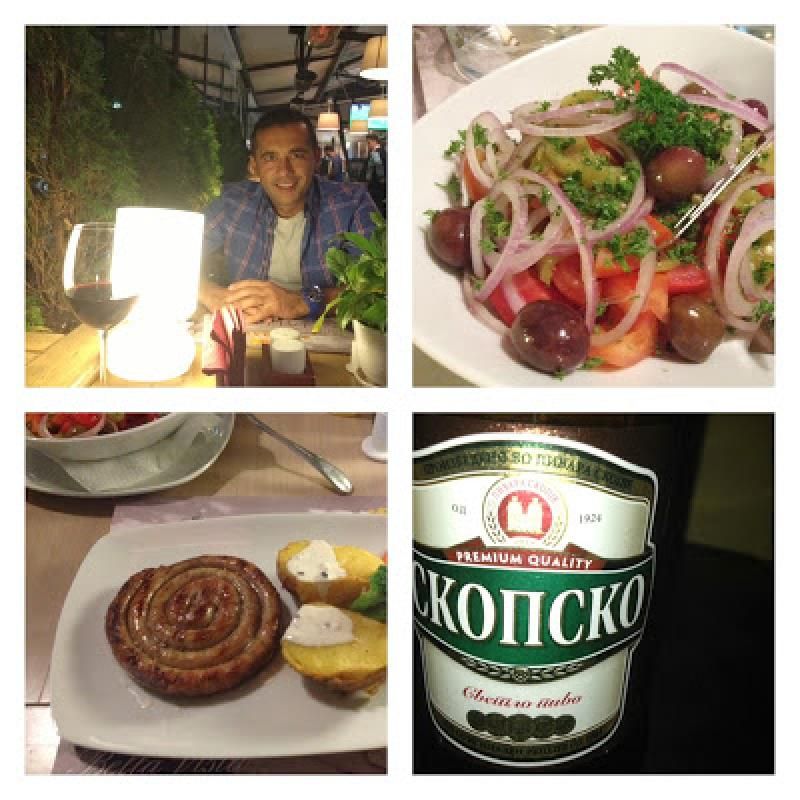 Akşam yemeğimizi Makedonların tarafında botanik bahçe konseptiyle dekore edilmiş bir restoranda, Bella Vista’da yiyoruz. Pirzola, salyangoz sosis ve Makedon salata oldukça başarılı.