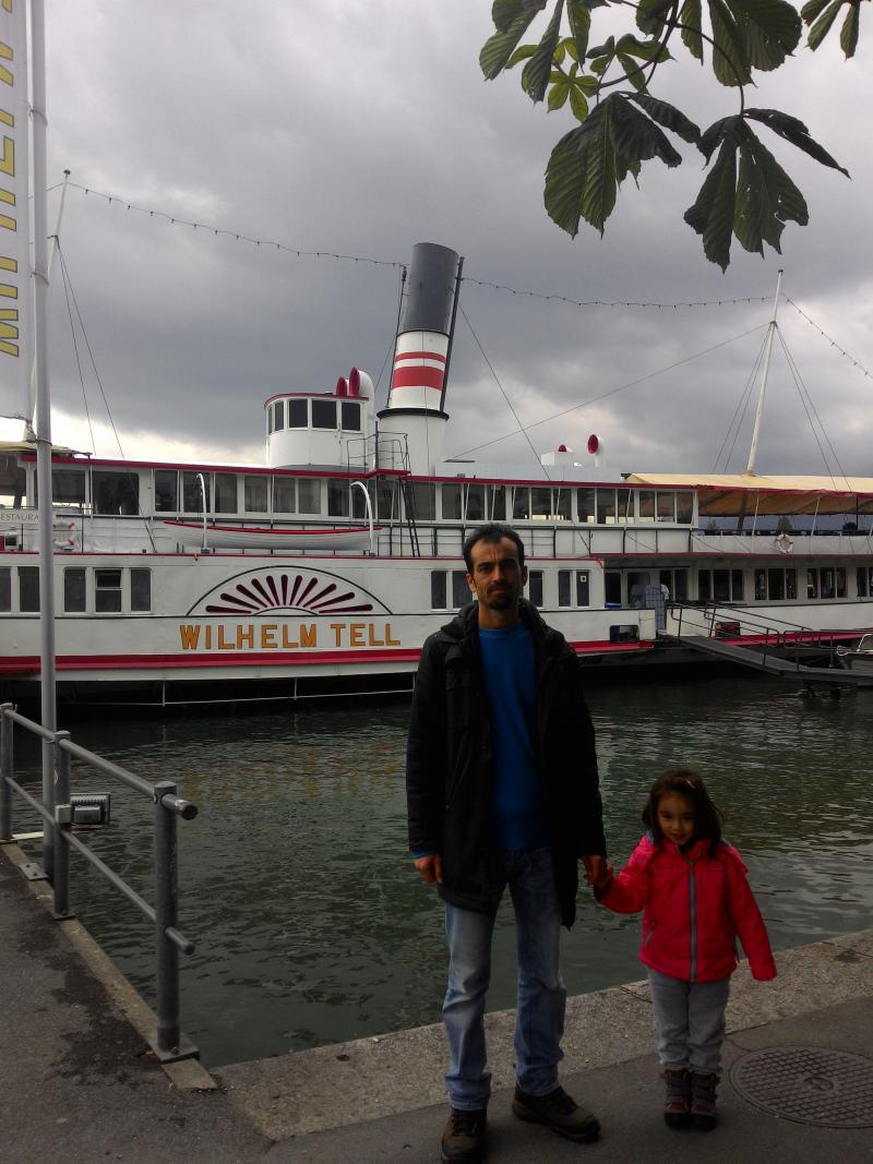 Theatreplatz'a varınca arabanın olduğu yere doğru gittik. Karnımız acıktığı için bir Luzern kahvaltısı yapalım dedik. Küçük prensesimize tavada yumurta söyledik ama yumurtayı tavada kırıp direkt getirdiler sanırım hiç ateşe tutmadan, belki çakmakları yoktu ya da o tavayla ateş birbirine küstü bilemedik. Neyse yumurtayı yiyemedik birkaç tane poğaça tarzı şeyler atıştırıp kalktık. Araçla Bahnof'un önünden karşıya geçtik, ileride uygun bir yere park edip Wilhelm Tell'in ismi verilen ve restoran olarak kullanılan teknenin olduğu sahili gezdik.