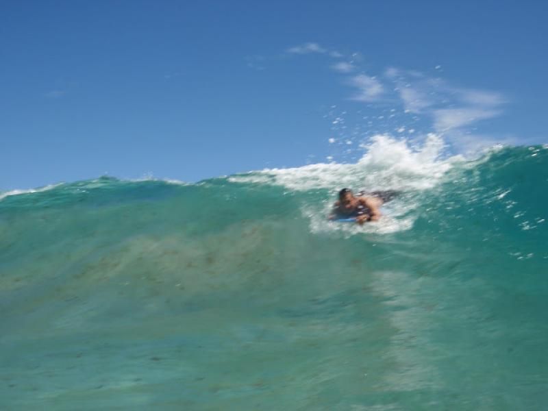 O'hau Adası’ndaki koyların genel özelliği dalgaların devasa boyutundan dolayı yapılan sörf. Zaten burada yüzülmez, mümkün değil yani. Bu dalgalar yer yutar adamı, bitirir. Arabayla bir koy bulduk, böyle 15 metre dalgaları olan bir yer. Orada sevgilim body board yapmayı öğrendi. Ben de kıyıda kendi kendime takıldım.