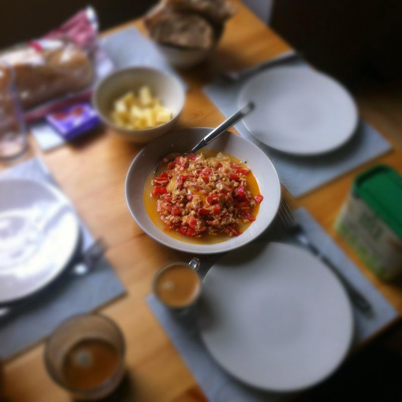 Edinburgh'ta şahane bir Couchsurfer bizi evinde ağırladı. Biz de ona kahvaltıda, aynı sıfatta bir menemen hazırladık (Ben kimyon yerine tarçın koyma gafletinde bulundum ama ev sahibimiz anlamadı, sorun yok!). Geceyi donmadan nasıl atlattık, şimdi anımsamıyorum ama perdesiz evinin camından yağmuru izlemek ayrıca keyifliydi!