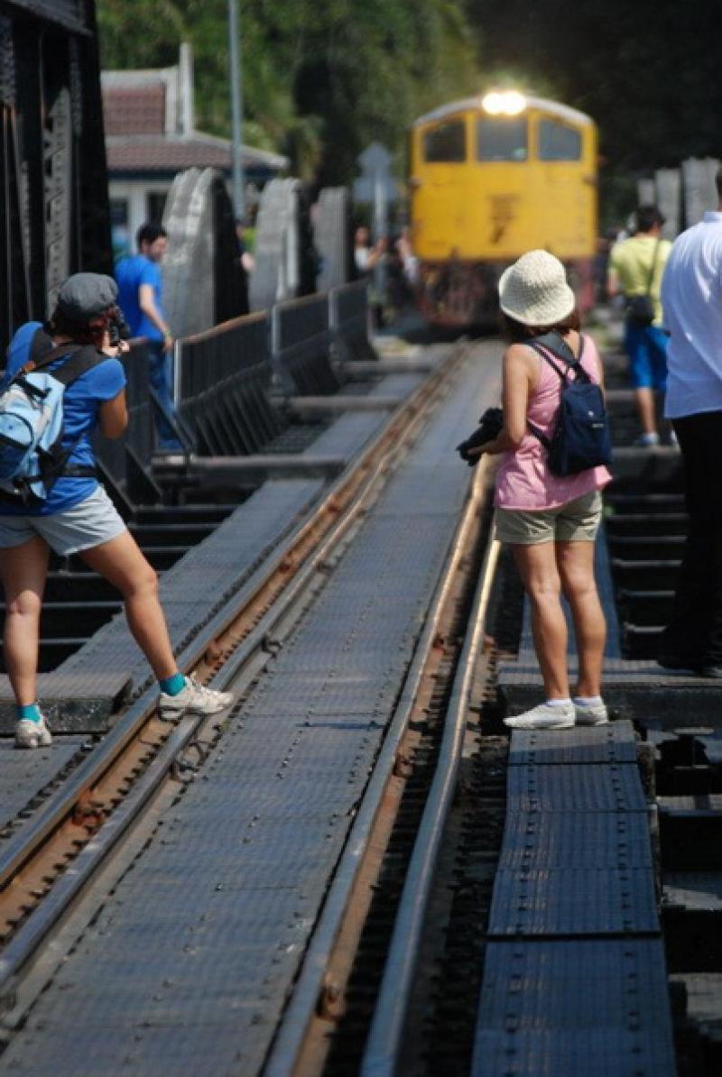 Ve gelelim günümüzün gezi noktasına. 3 saatlik bir otobüs yolculuğunun ardından Kanchanaburi´ye, Bangkok´un 130km batısında bir kasabaya vardık… Kwai Köprüsü de bu kasabada 2. Dünya Savaşı sırasında inşa edilen ve Kwai Nehri'nin üzerinde yer alan bir köprü. Bu köprünün özelliği nedir derseniz hemen bahsedeyim; Japonlar, 2. Dünya Savaşı sırasında esir düşen İngiliz askerlerden, oldukça stratejik bir nokta olan Kwai Nehri üzerinde bir köprü inşa etmesini isterler. Tabi bu hiç kolay olmaz. Yapılan ilk köprü ahşaptandır ve hemen yıkılır, sonrasında bir köprü daha yaptırılır. Birkaç kez yıkılıp yeniden yaptırılan Kwai Köprüsü, her seferinde bir öncekinden daha sağlam ve güçlü olarak inşa edilir. Son yapılan çelik köprü hala ayakta ve turistlerin yoğun ilgisi altında. Bu ilginin sebeplerinden biri de, yönetmen David Lean'in köprünün ilginç hikayesini anlattığı aynı adı taşıyan sinema filmi olsa gerek.