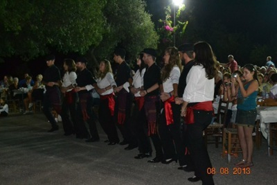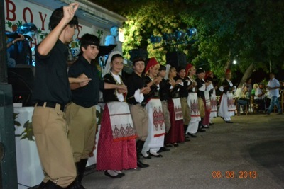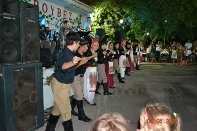 Derken folklor kıyafetli gençler bizlere halk oyunları şöleni sunuyorlar, hemen arkasından ise delikanlı ve genç hanımlardan oluşan bir grup hasapiko-sirtaki gösterisine başlıyor.