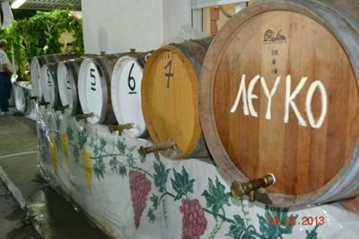 Fazla bir kar amacı gütmüyor olacaklar ki kişi başı neredeyse 8-9 € ya müthiş lezzetli köy ürünleri yiyoruz. Kendi üretimleri olan şarap ise beyaz ve kırmızı çeşitleri ile 8 varildeki musluklardan ücretsiz dolduruluyor, bazı varillerdeki gerçekten güzel şaraplarını Yunan müziği eşliğinde yudumlarken bazı parçalar kulaklarımıza hiç de yabancı değil.