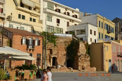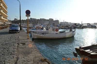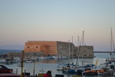 Old Town tabelalarını takip ederek liman bölgesine geliyoruz. Tarih boyunca Venedik ve Osmanlı arasında el değiştiren şehir, Yunan adasından çok Osmanlı ve Venedik karışımı gibi, her iki kültürün de izlerini özellikle liman bölgesinde hissediyoruz. Burada çok eski bir tarih yatıyor ve bu manzara etkileyici. Büyükçe bir koy içindeki liman, bir yanda uzun bir mendirek ve ucunda güzel ve zarif bir Venedik deniz feneri, diğer ucunda ise büyük Venedik kalesi ki bu kale Osmanlılar’ın Girit Adası’nda fethettiği ilk kale.