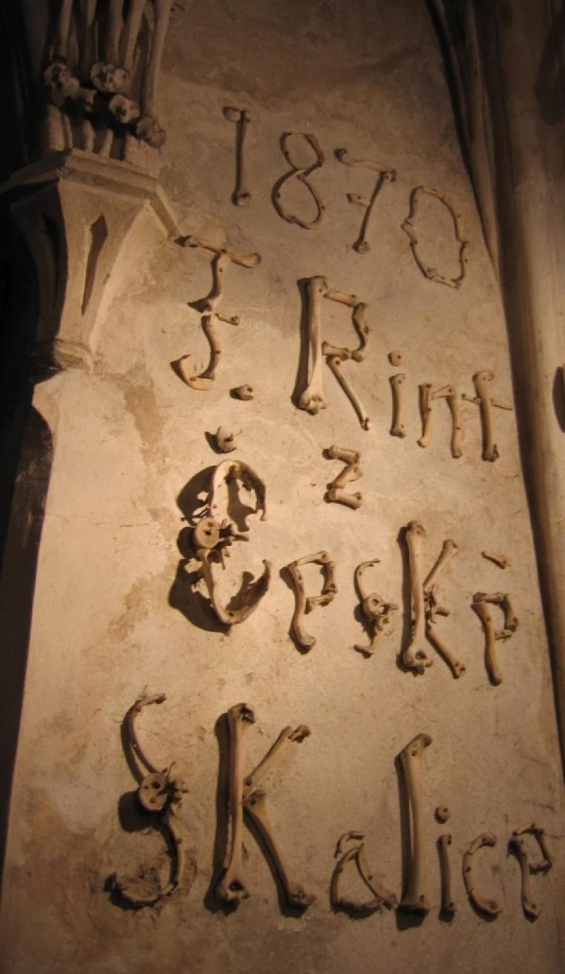 Kilisenin avizelerini ve piramitlerin üzerindeki taçları, kilisedeki kemikleri kullanarak dekore eden kişi ise İtalyan asıllı Çek Mimar SANTINI.