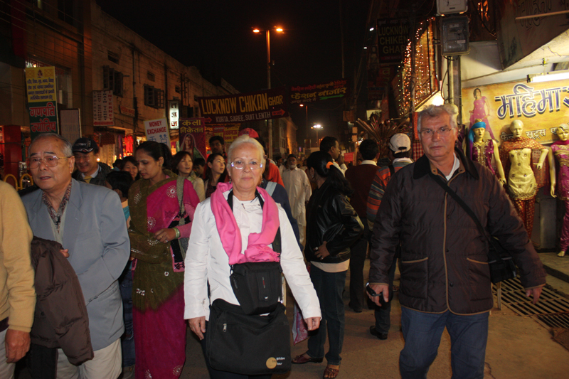 Ganj nehri kıyısında yapılan akşam törenini izlemek üzere, nehre 250 metre kala arabadan iniyoruz, kalan yolu yürüyeceğiz.