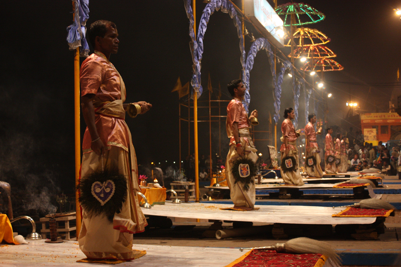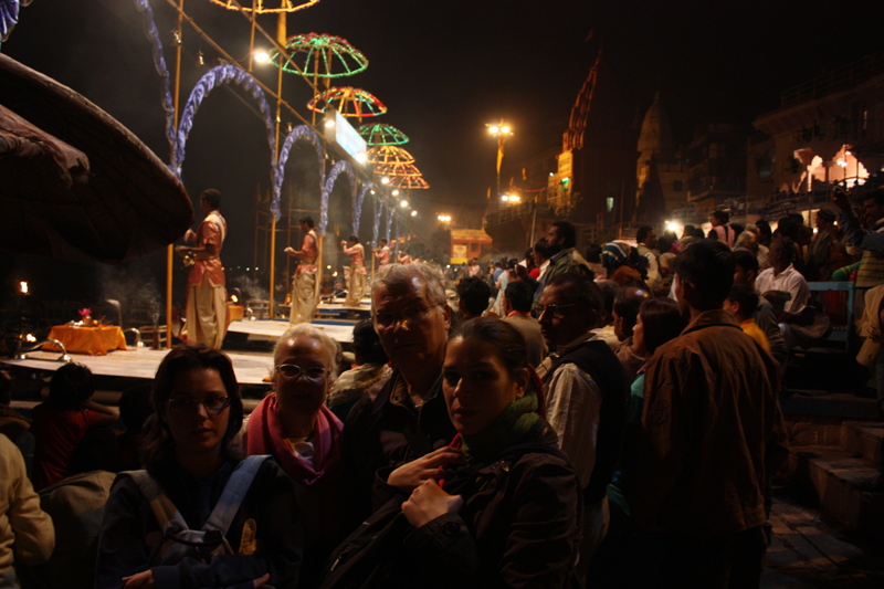 Akşam yapılan Aarti töreninde 2 farklı ayin var. Biz 7 rahibin yaptığı törene katılıyoruz, bunun yaklaşık 1 kilometre kadar ilerisinde başka 5 rahip de ayrı bir tören yapıyor.