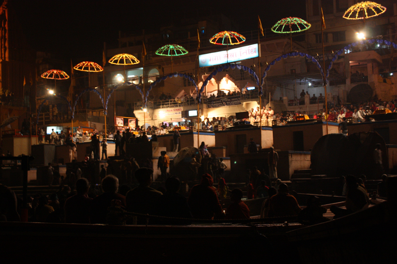 Muson yağmurları döneminde bazen Ganj çok yükseliyormuş. Mesela törenin yapıldığı sahne şu anda su seviyesinden 4-5 metre yüksekte olmasına rağmen, yağmur zamanı sular altında kalıyormuş. Ama tabii ki törenlere ara verilmiyor, biraz daha yüksek bir yerde mutlaka her akşam yapılıyor.