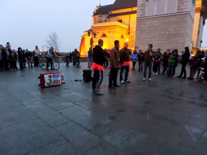 Şurada köşede gördüğünüz ev Varşova'nın en dar evi : ) Savaşta % 95'i yıkılan bu ev yeniden inşa edilmiştir. Çok da tarihi sayılmaz fakat güzel bir ayrıntı ve aslına bağlı kalınarak inşa edilmesi sevindirici : ) Buradan ilerlediğimizde Barbakan Warszawski yani eski şehir surlarını görüyoruz. Akşamüzeri burada yürürken ışıklandırma ve müziklerle ortaçağı yaşıyorum sanki : ) Resim çizen sokak ressamları, heykeltıraşlar, müzisyenler ve surlar...
