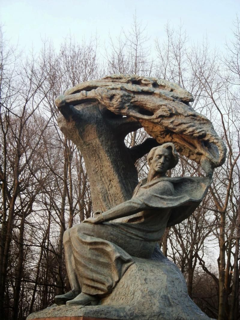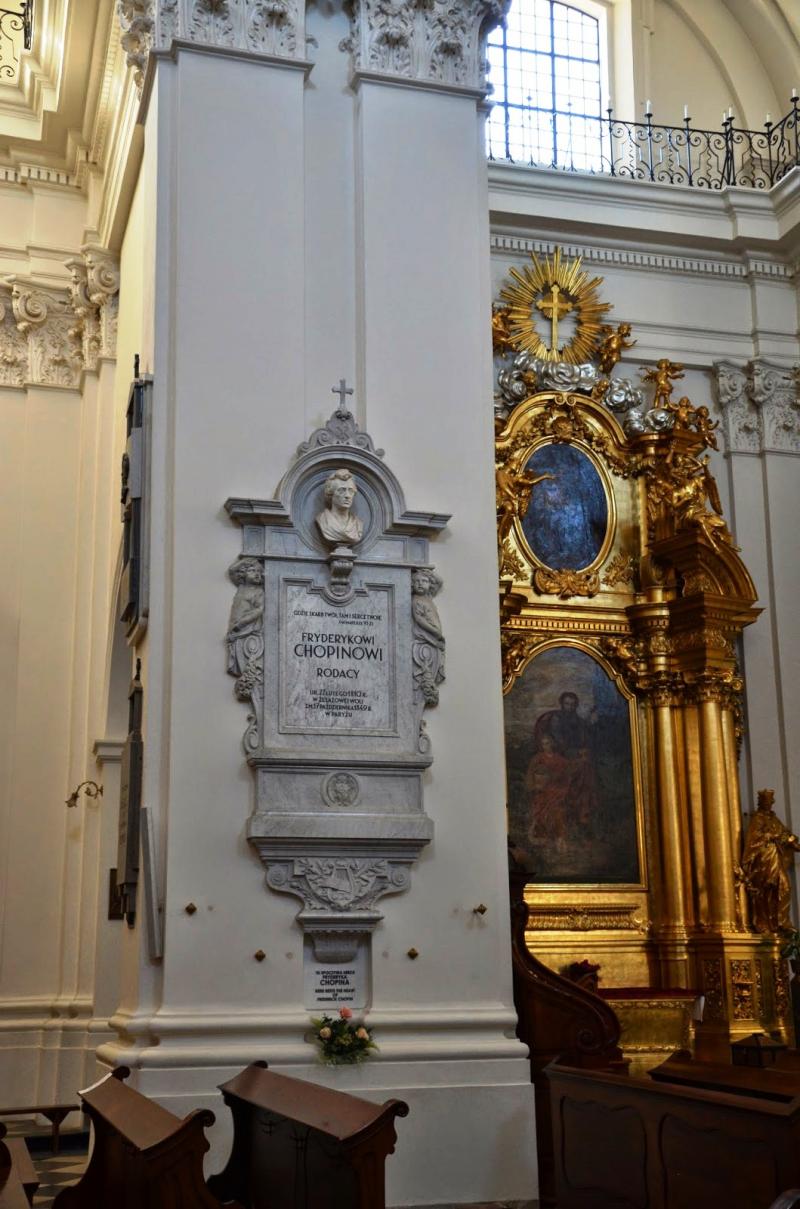 Bu parkta ünlü müzisyen Chopin'in heykeli bulunmaktadır. Annesi Polonyalı, babası Fransız olan Chopin 1810 yılında Polonya'da doğmuştur. İlk olarak "Pianist" filmi ile eserlerini dinlemiştim Chopin'in. Paris'te ölen ve mezarı orada bulunan ünlü müzisyenin kalbi, Varşova'da bulunan Holy Cross Kilisesi'ne öldükten sonra vasiyeti üzerine getirtilmiştir. Chopin'in kalbinin bulunduğu kolonun ve kilisenin fotoğrafı aşağıdadır.