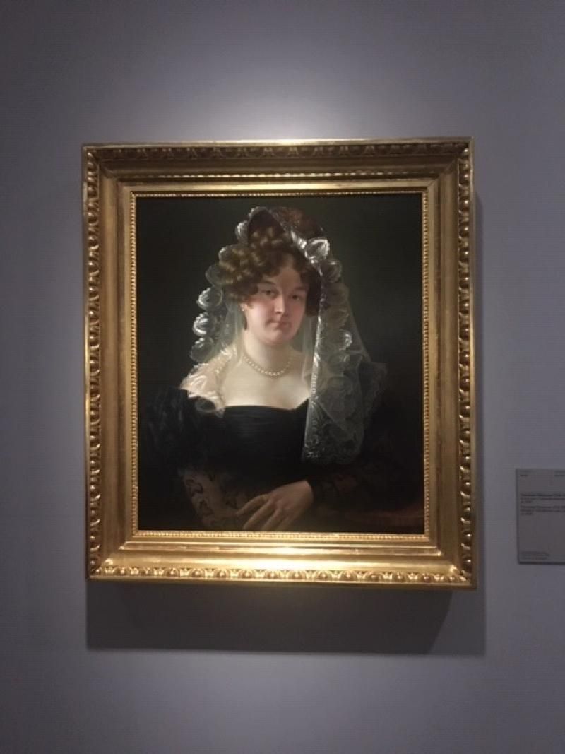 Bunlardan ilki, resim içinde resim diye adlandırabileceğim olağanüstü detaylı eserler ki bunlardan birinde portresi yapılmış bir kadının başındaki eşarbının tüm dantel detayları fotoğraf gibi çalışılmış.