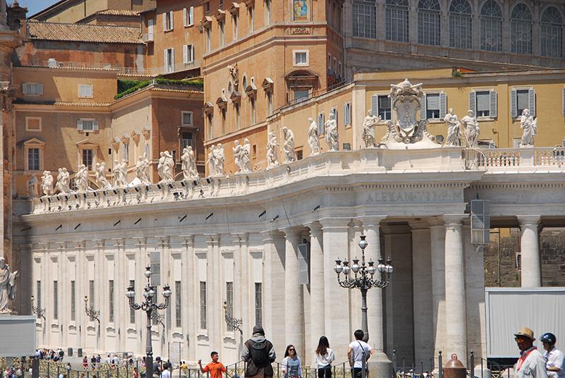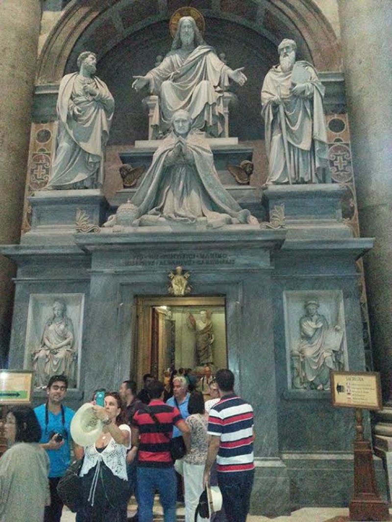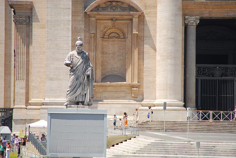 Dünya’nın en büyük kilisesi… Dış cephe travertenden oluşuyor. Michelangelo başlamış ve Bernini 284 traverten sütunu ve tepelerinde azizlerin 140 heykelinin bulunduğu 88 gömme sütunu, 1656 ve 1667 yılları arasında tamamlamış. Bu kiliseyi ziyaret edebilmek için kıyafetlerinize dikkat etmeniz gerekiyor. Etek ya da pantolon boyları en kısa diz altında olmalı ve en açık yarım kollu üst giymeniz gerekiyor. Bu kural, kadın-erkek herkes için geçerli… Eğer kurala uymazsanız, giriş kapısından geri çevriliyorsunuz. En önemlisi de giriş kapısına ulaşabilmek için tenha zamanda bile 1 saat kuyrukta beklemeniz gerekiyor.