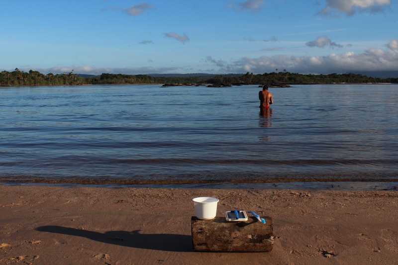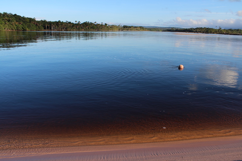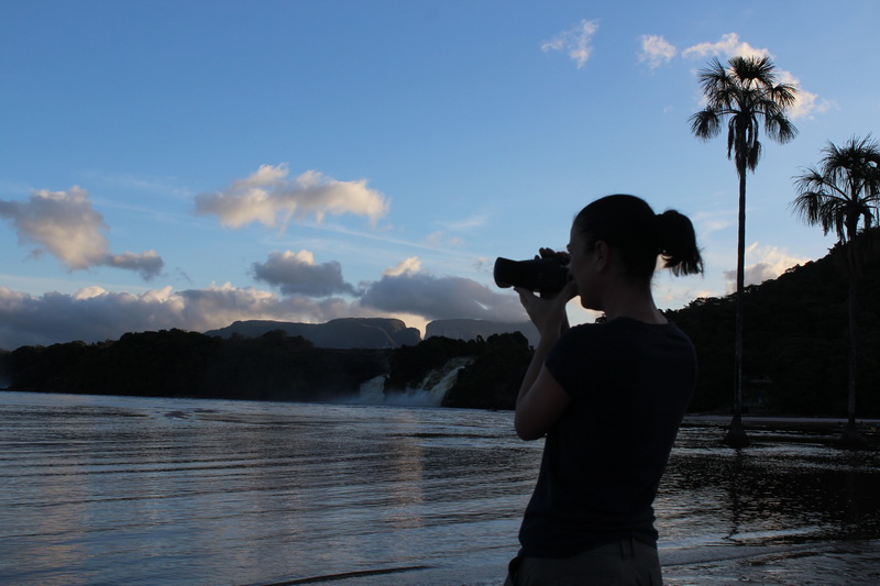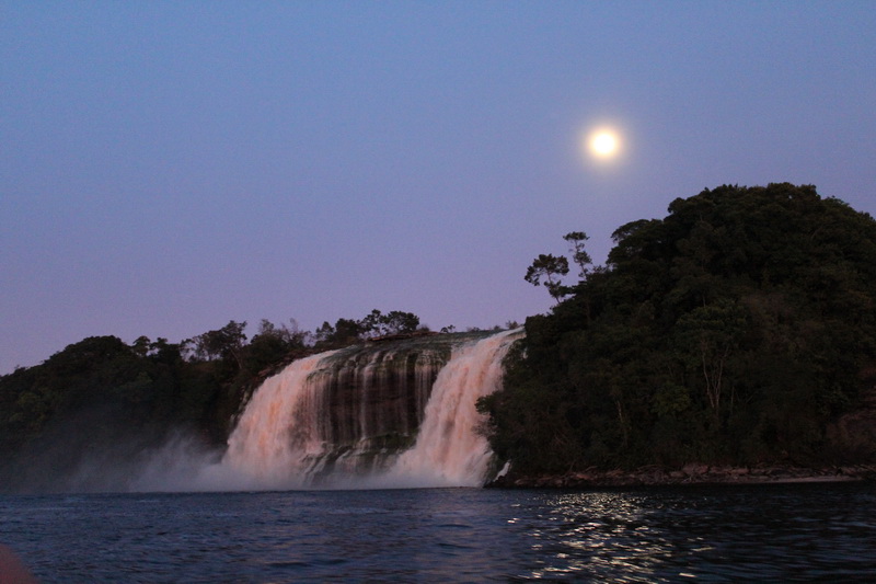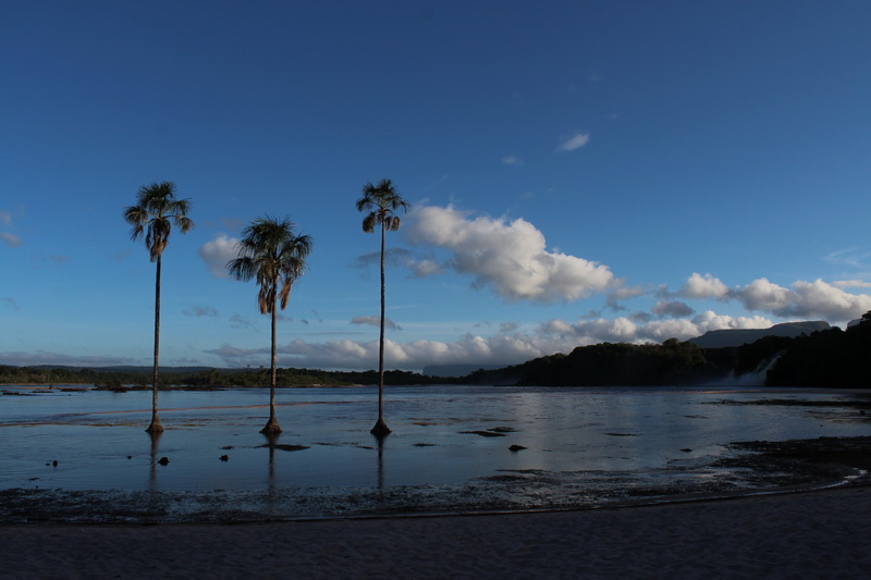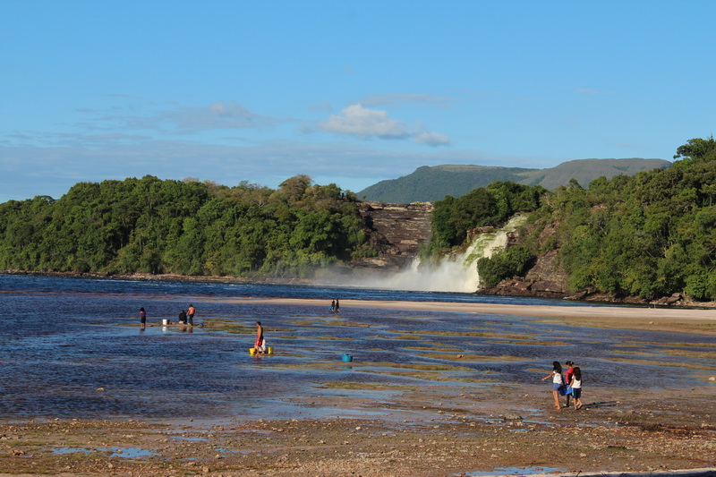 Kahvaltı saatine kadar bol bol yürüyüş yaptım. Sahil oldukça sığ, tam karşımda gürül gürül akan şelale. Şelalenin yanında ise ufak bir hidroelektrik santrali. Bu santral Canaima’nın büyük bölümüne elektrik sağlıyor. Ama doğa ile o kadar uyumlu yapılmış ki, hiç gözü rahatsız etmiyor.