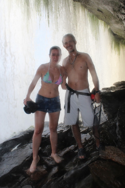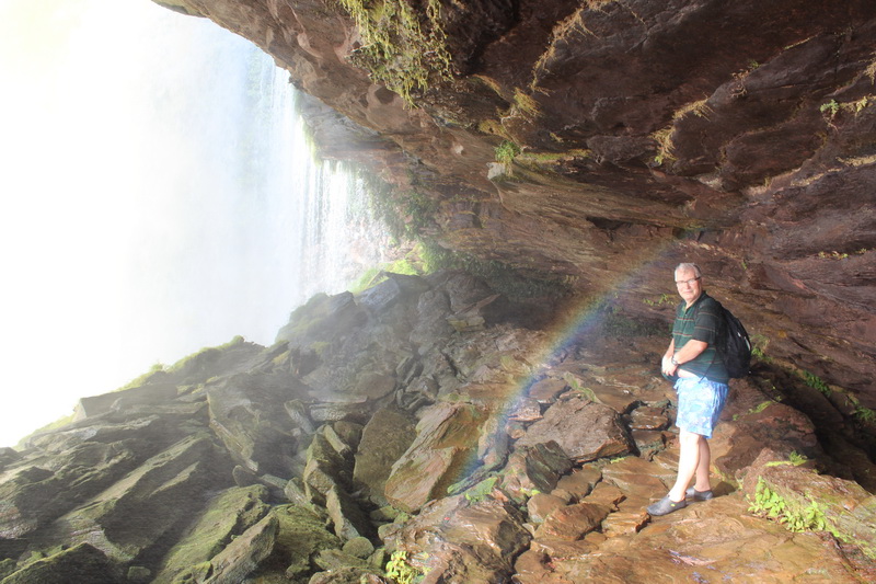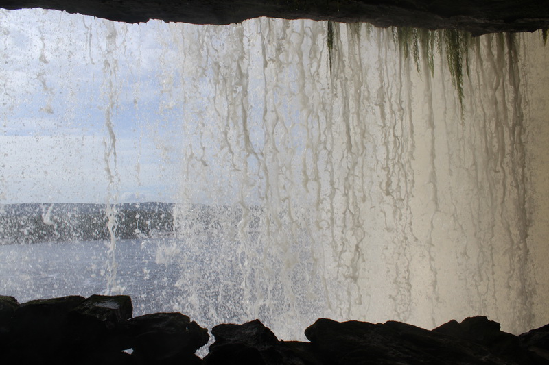 Yaklaşık 30 dakika süren kano turumuz sonrası Hache şelalesine yakın bir kumsala yanaşıyoruz. Buradan kısa bir tırmanış ile şelalenin yanına ulaşıyoruz. Buradan şelalenin arkasında yürüyüş yapacağız ve de tabii ki ıslanacağız. Bu nedenle büyük bölümümüz kıyafetleri çıkartıyoruz ve şelalenin ardındaki yürüyüşümüze başlıyoruz. Ses muhteşem, doğa muhteşem, görüntü muhteşem…