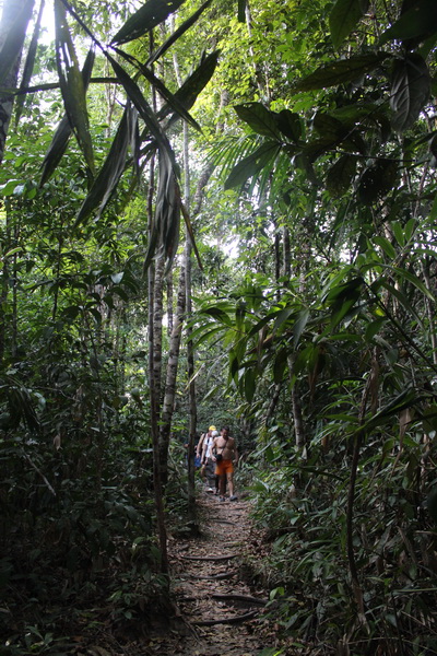 Ardından Sapo şelalesine gitmek üzere orman içerisinde yürüyüşe başlıyoruz. Yürüyüş sırasında karıncalara ev sahipliği yapan bitkileri gördük. Yürüyüşte en fazla dikkat edilmesi gereken ağaçların yollara taşan kökleri.