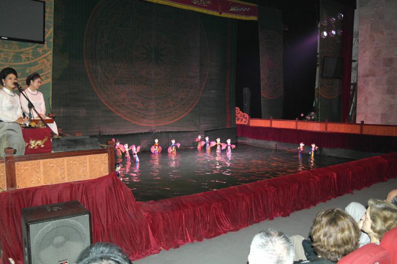 İlk olarak; dünyaca ünlü Vietnam su kuklaları gösterisini izlemek için "Thang Long Water Puppet Tiyatrosu"na gittim. Müzik grubunun canlı olarak çalarak söylediği Uzak Doğu müziği eşliğinde kuklalarla muhteşem bir su gösterisini izledim.