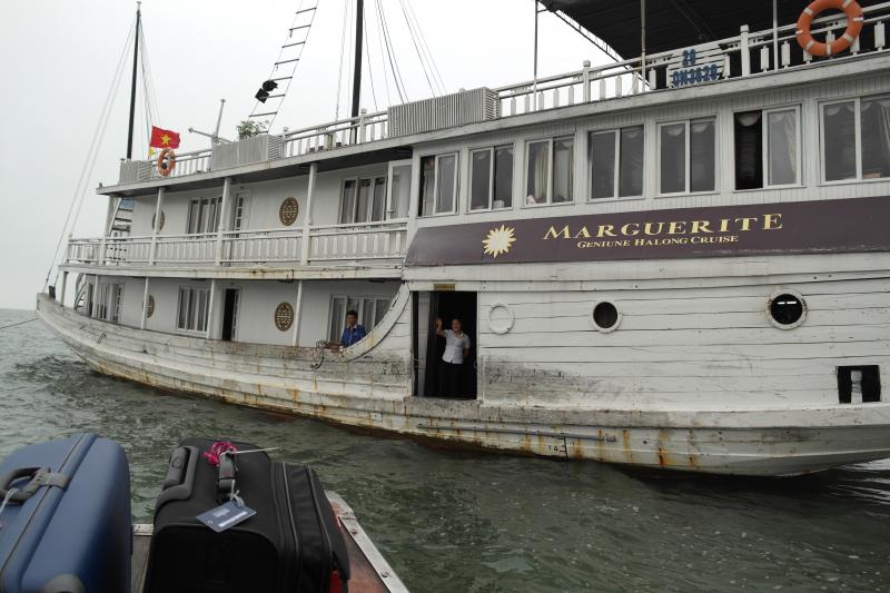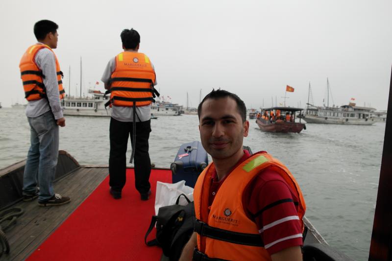 Halong Körfezi'nin limanına vardığımızda bizi ufak teknelere aldılar. Bu ufak tekne bizi ileride bekleyen Junk adını verdikleri ve bir gecemi geçireceğim 3 katlı ahşap tekneye götürdü.