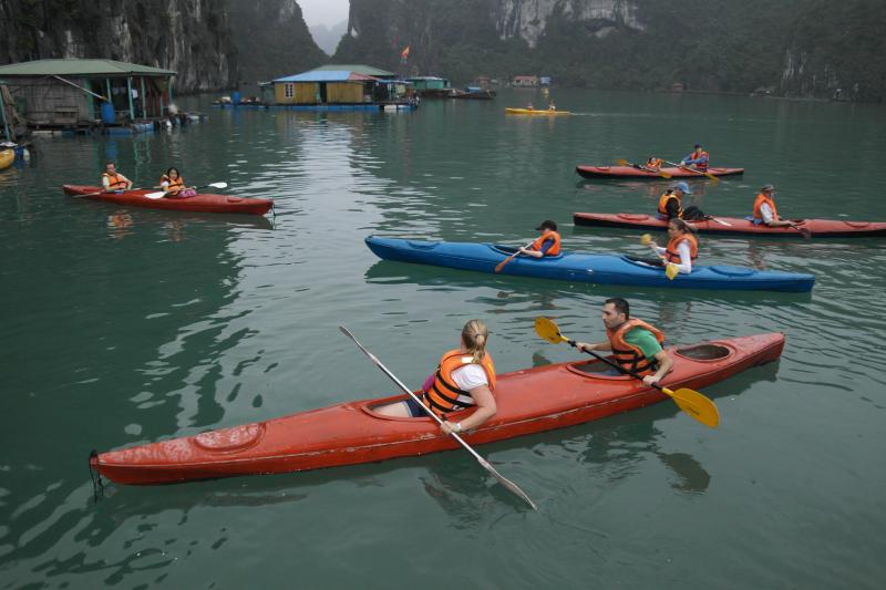 Teknemiz tekrar yol almaya başladı. Şimdi de körfez üzerinde yüzen bir balıkçı köyünden geçiyoruz. Düşünebiliyor musunuz; su üzerinde onlarca yüzen kulübecik var. Evet burası bir köy. Bu köyde ulaşım ufak teknelerle yapılıyor. Bu köyün geçim kaynağı ise balıkçılık ve bu köye yanaşan turist gemilerine yanaştırdıkları teknelerinden sattıkları o sulardan çıkartılan takı, kolye türü hediyelik eşyalar. Vietnam'da beni en etkileyen şey tabii ki bu muhteşem balıkçı köyü oldu.