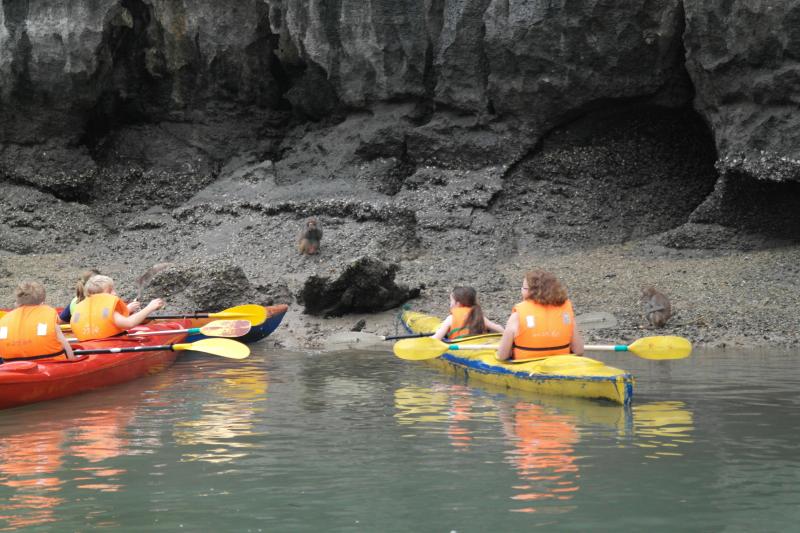 Körfez üzerinde muhteşem kayalıkların arasından geçerek maymunlar adasına ulaştık, bu adanın kıyısında sanki yüzlerce maymun bizi el sallayarak karşılıyordu. Teknelerden adaya muz ve diğer türlü yiyecekler atılıyordu, doğal olarak maymunlar da bayram yapıyorlardı.