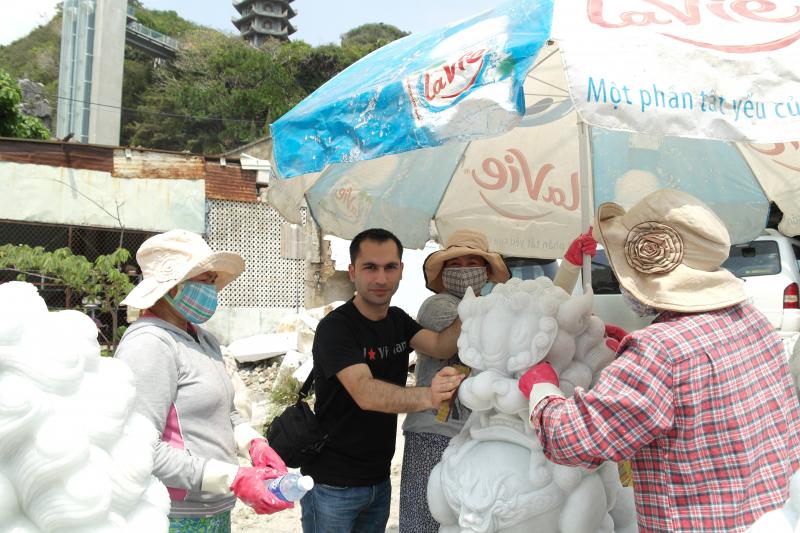 Burada ilk başta karşıma heykeltıraşçı mermerci bayanlar çıktı, yaptıkları dev mermer heykelleri zımparalıyorlardı. Boş durur muyum hiç, ben de işin ucundan tuttum ve oradaki bayanlara heykeli zımparalamada yardımcı oldum.