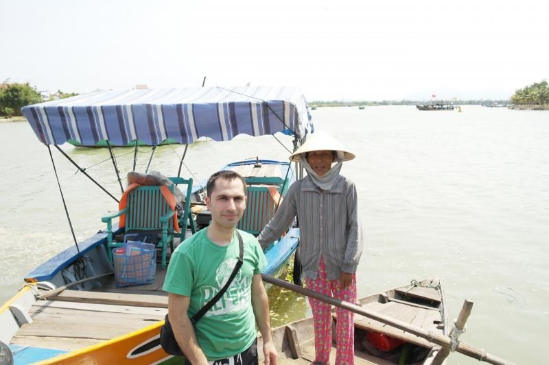 Thu Bon Nehri kenarından yürürken oradaki teknelerden biriyle nehre açılmak için Vietnamlı bir bayanla anlaştım. Fazla uzun sürmese de Thu Bon Nehri'nde, o muhteşem bitki örtüsü manzarası eşliğinde kürek salladım.