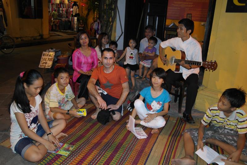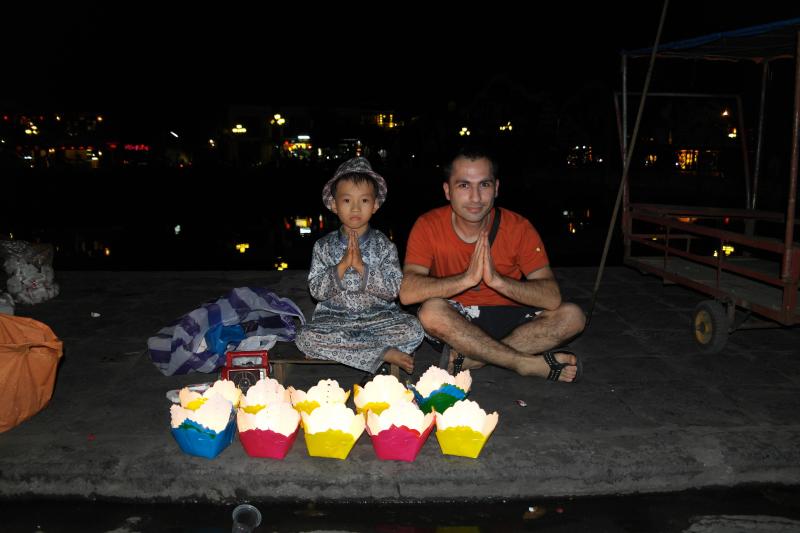 Hoi An'daki ilk gecem, sokak çalgıcılarının gösterilerini izlemekle başladı. Gece aydınlatılmış sokaklarda yürürken karşıma Hoi An caddelerinde şarkı söyleyen Vietnamlı miniklerle karşılaştım ve onlara eşlik ettim. Sonrasında nehre bırakılmak için, içi mum dolu kayıkçıkları turistlere satan bir Vietnamlı minikle karşılaştım, bu miniğin sattığı kayıkçıklardan birini satın alarak Thu Bon Nehri'ne bıraktım. Ufaklığın o andaki mutluluğu görülmeye değerdi.