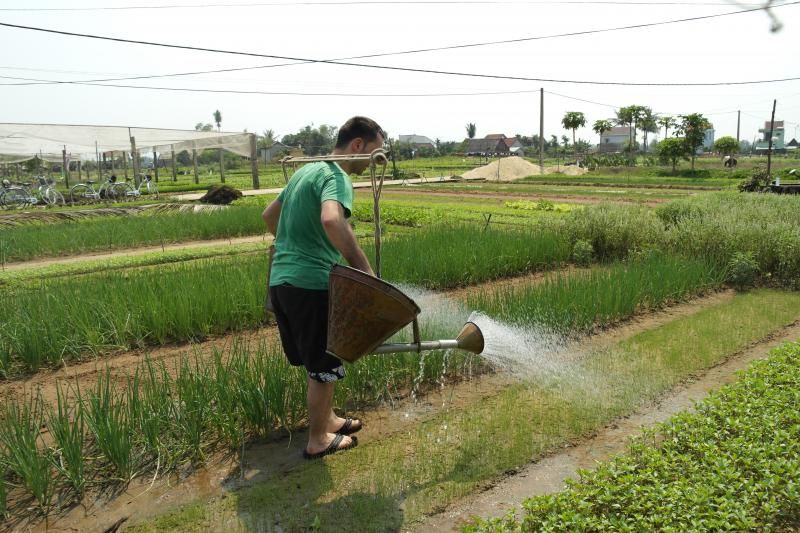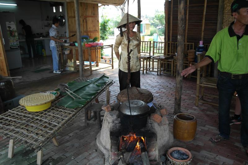 Ertesi sabah Hoi An'da, Vietnam'ın bitki örtüsünü daha yakından tanımak için bisiklet turuna çıktım. Bisikletle şehir dışına doğru pedal çevirdik. Yol üzerinde karşımıza çıkan, içinde bir su değirmeninin bulunduğu çiftliğe misafir olduk. Bu çiftlik evinde odun ateşiyle pişen, bu yörenin yemeklerinin hazırlanışına tanık oldum.