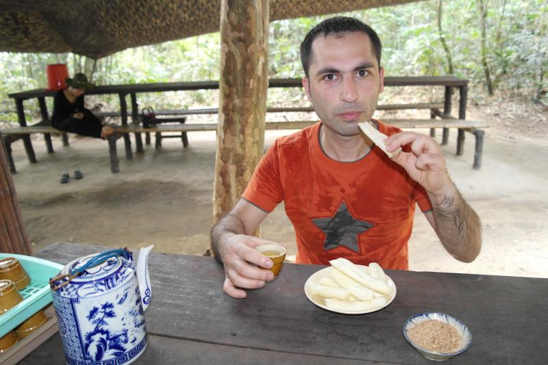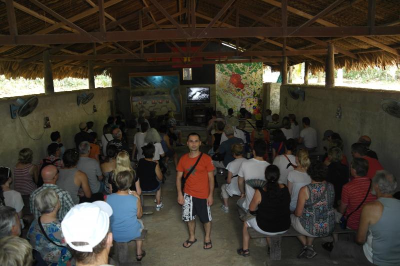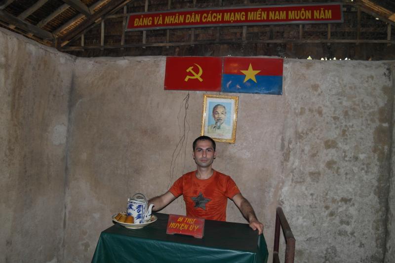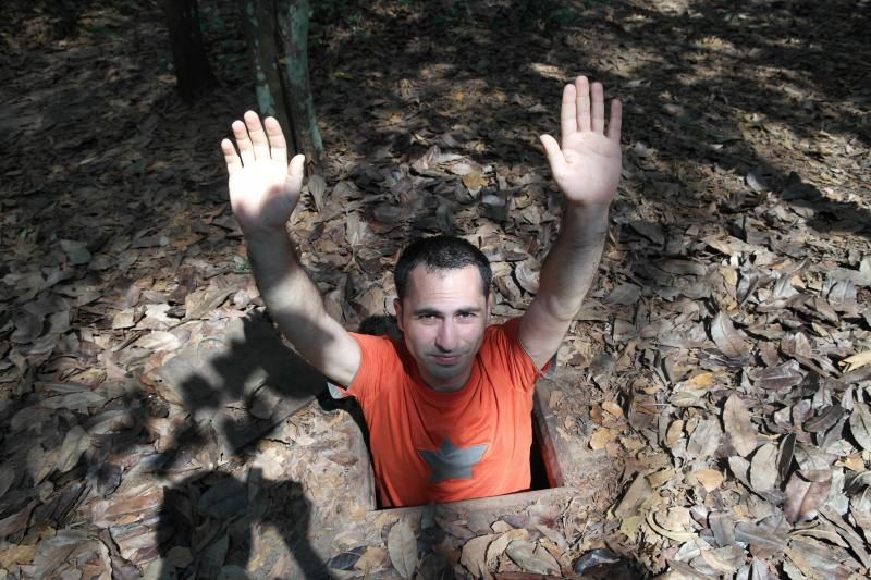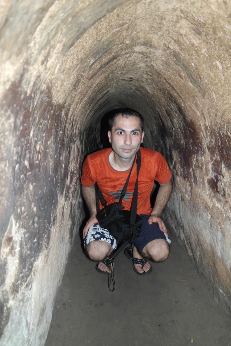 Ertesi sabah acentemin görevlisi beni otelimden alarak Ho Chi Minh şehrine 1 saatlik mesafede olan Cu Chi şehrine hareket ettik. Tünellerin bulunduğu alanın girişinde beni Vietnam savaşları ile ilgili gösterilen bir sinevizyon gösterisi karşıladı. Daha sonra Cu Chi görevlilerinden biri bana Vietnam askeri üniforması giymiş, tünellerde bana rehberlik edecek bir görevli tahsis etti.