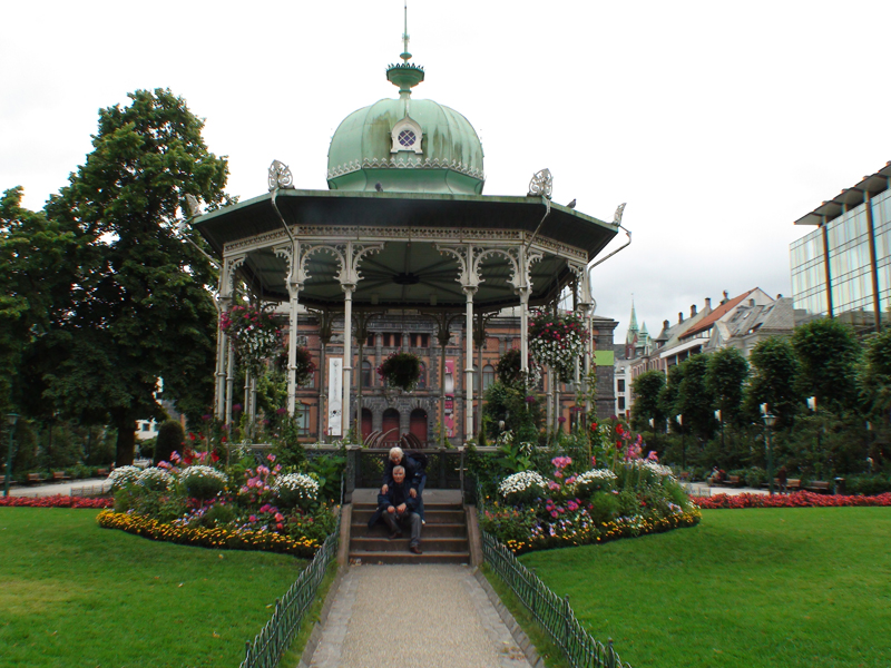 Kültür ve Kongre Merkezi’nin önündeki ferforje ağırlıklı, çiçeklerle donatılmış çardak çok güzel. Kültür ve Kongre Merkezi önünde Bergen Flarmoni orkestrası kurucularından Edvard Greeg’in heykeli bulunuyor. Greeg ilk flarmoni orkestrasını 1786’da kurmuş. Bergen’den çok ünlü caz ustaları yetişmiş. Kültür Merkezi etrafından müzik aleti satan pek çok mağaza bulunuyor. Burada pek çok müzik ve caz festivalleri düzenleniyormuş. Madonna, Rolling Stones gibi ünlü sanatçılar 2-3 yılda bir buraya gelip konser veriyorlarmış. Dolayısı ile bu dönemlerde Bergen, tüm Kuzey Avrupa gençlerinin akınına uğruyormuş.