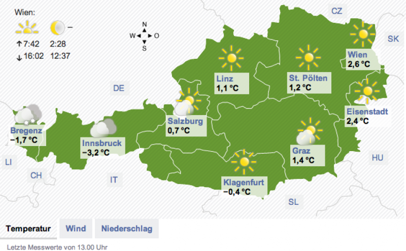 Genelde sorulan sorularin basinda hava durumu geliyor. Uzun vadeli tahminlerde bulunmak zor ama benim tavsiyem asagidaki iki link olacaktir. Birincisi Avusturya'nin resmi hava durumu, digeri ise BBC'nin (tahminleri oldukca basarili).