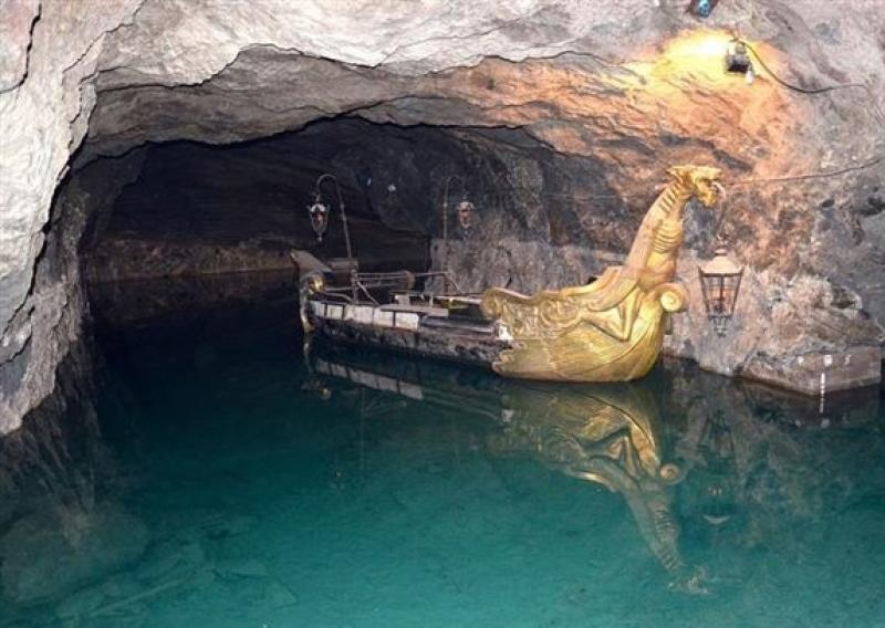 İskelenin karşısındaki kuytulukta, ejderha kafalı, fener tarzı araçlarla aydınlatılmış sembolik bir tekne var. 1993 yılında, 3 Silahşörler Zegrotta (The Three Musketeers) adlı filmde kral kurtarma sahnesi burada çekilmiş. Burada kralı kurtarıp arkasından aşağıdaki göle inip ejderha kafalı tekne ile beraber yer altı gölünden okyanusa, açık denize çıkmışlar. Tekne ise buraya hediye olarak bırakılmış.