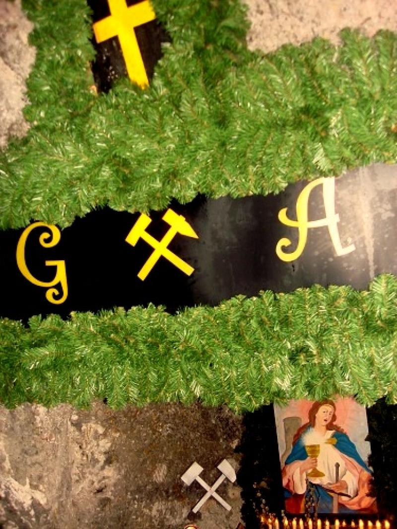 Yine maden olarak kullanıldığı dönemde madencileri koruduğuna inanılan St. Barbara adına burada bir küçük yeraltı şapeli yapılmış. Gördüğünüz “G-A” harfleri ise, madencilere şans dileme anlamında “glück auf” kelimelerinin baş harfleri.