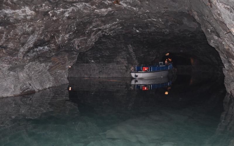Şapeli geride bıraktıktan sonra en alt kata giderek bizi bekleyen kayığı doldurup gölün üzerinde ilerliyoruz. Şu an itibariyle yerin 60 metre altında seyrediyoruz. Tekneler 26 kişilik. Kayık motorundan hiç ses çıkmıyor. Çünkü elektrikli. Sanırım akustikten ötürü yüksek sesle çalışan bir kayık tercih edilmemiş. Turlar, aynı tipte iki tekneyle yapılıyor. Biri kalkarken diğeri yanaşıyor. Zira gölün uzandığı labirentlerin önemlice bir kısmı, bir teknenin geçişine izin verecek genişlikte. Gölün suyu mavi ve çok temiz. Altındaki her şeyi net görmek mümkün. Göl suyunun yüzeyi 6200 m²’lik bir alana sahip. Suyun ortalama derinliği ise 1,20 metre olmakla beraber, yedi farklı kaynaktan beslenen ve hiçbir doğal boşaltma sistemine sahip olmayan yer altı gölünün su seviyesini koruma adına her gün yaklaşık 50.000 lt su dışarı pompalanıyormuş. Gölün suyu, doğal kaynak suyu olduğu için dışarı çıkarken topladığı minerallerden dolayı oksijen içermiyor ve içinde canlı yaşamıyor. Derinlik az gibi görünse de 2004 yılında tekne devrilmiş ve burada boğulanlar olmuş.