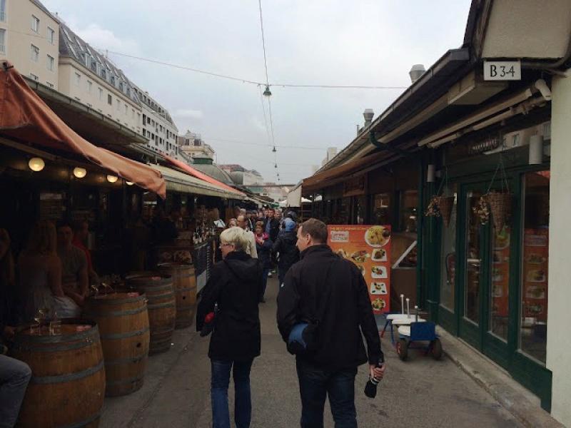 Yaklaşık 1,5 kilometre uzunluğundaki bir pazar yeri olan Naschmarkt 16. yüzyıldan beri varlığını sürdürüyormuş. Sağlı sollu sebze ve meyvelerin sergilendiği bölümlerden, peynir, zeytin şarküteri reyonlarına kadar herşey var. Tok bile olsanız, bu kadar özenle sergilenmiş yiyeceklere karşı koymak çok zor. Tesadüfen Türklerin işlettiği bir reyondan kendimize güzel bir tabak hazırlatıp, bir kadeh şarapla beraber keyifle atıştırıyoruz.