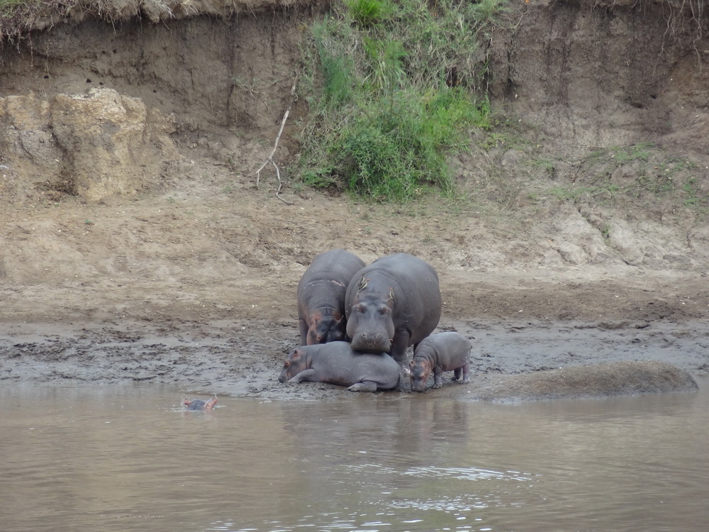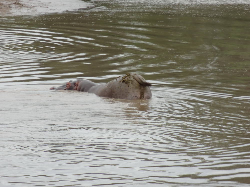 Biz çok şanslıydıkki, hem poposunun çevresinde kuyruk çeviren hippopotamı, hem de sudan çıkmış hippopotam ailesini gördük.
