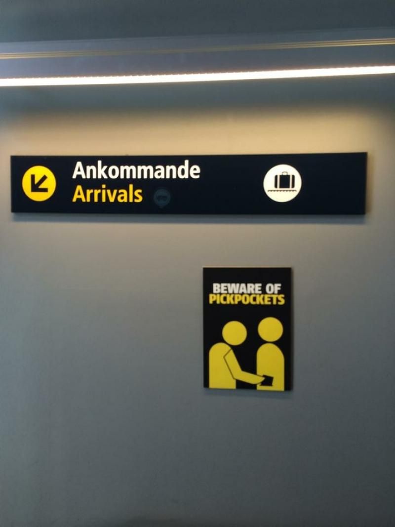 Havalimanına indiğinizde, pasaport kontrolden önce kapkaç/hırsızlığa ilişkin uyarı levhası sizi karşılıyor; pasaport kontrolden sonrada kral ve kraliçe.